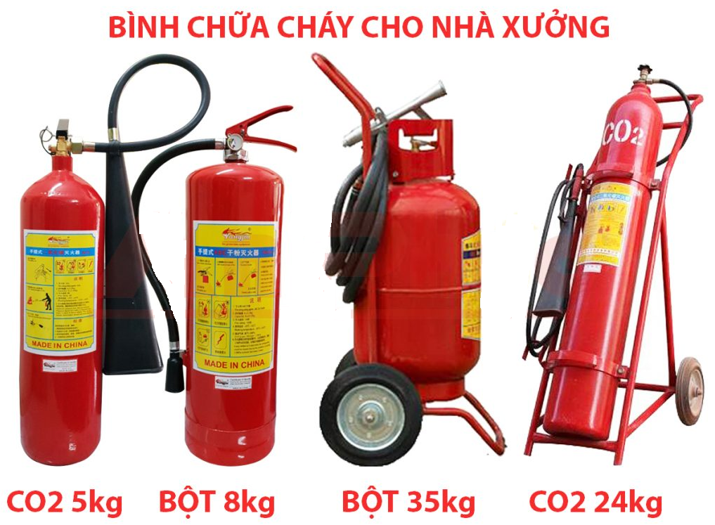 - Bình chữa cháy bột: Đa năng, có thể dập tắt nhiều loại đám cháy (A, B, C).